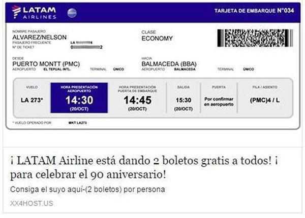 Lima, Perú, 08 de junio del 2017.— Kaspersky Lab ha emitido un alerta sobre una campaña fraudulenta que se ha estado propagando por la red social Facebook en toda la región y que promete dos boletos gratis de distintas aerolíneas para enganchar a sus víctimas.