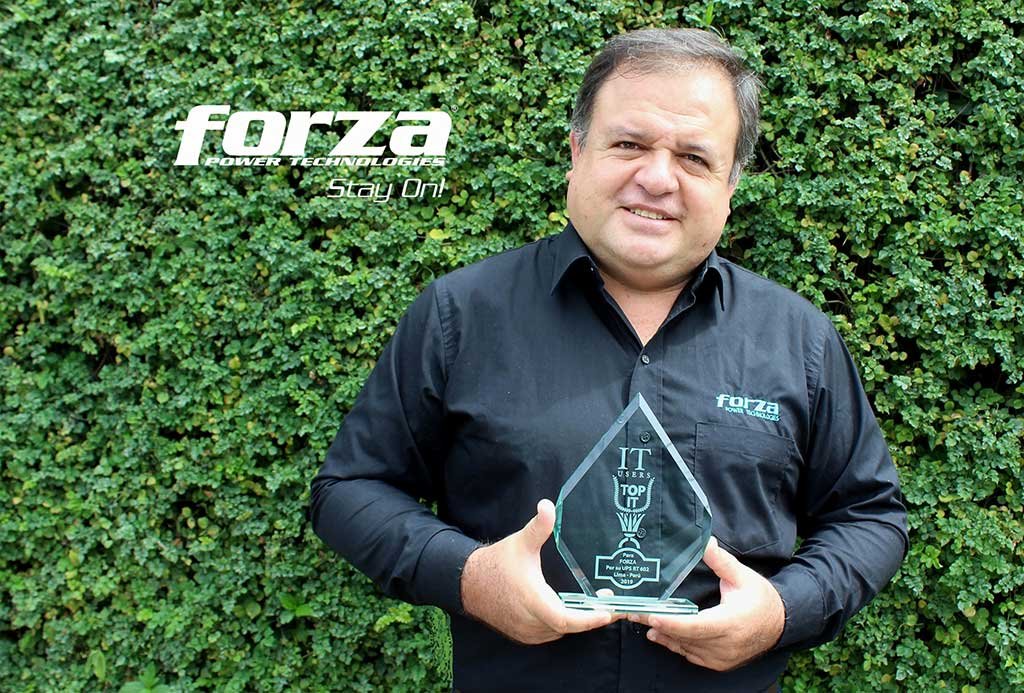 Lima, Perú, 18 de Mayo del 2019.— Forza Power Technologies, fabricante líder en sistemas de protección y respaldo de energía se hizo acreedor de un trofeo TOP IT por su nuevo UPS RT-602 LCD en la ceremonia de premiación anual de los IT/USERS® Awards 2019 realizada en el Belmond Miraflores Park Hotel.
